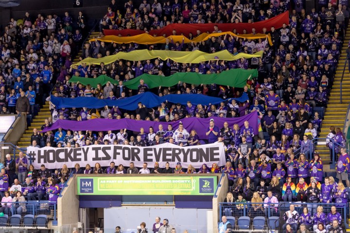 Fans of Glasgow Clan displayed a huge banner and waved rainbow colours, with many wearing rainbow shirts and colours of support, at the Elite Ice Hockey League’s playoff event in Nottingham at the weekend.