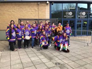 Each year Glasgow Clan fans, or the Purple Army as they’re collectively known, organise a theme for their section of the play-offs and this year Linda Hancy decided she wanted to try a rainbow theme, bringing everyone together in a show of diversity.