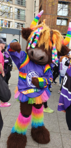 Glasgow’s Clangus the Coo was dressed to impress with a colourful rainbow outfit on during the weekend too. Clangus was proud to take part and told us: