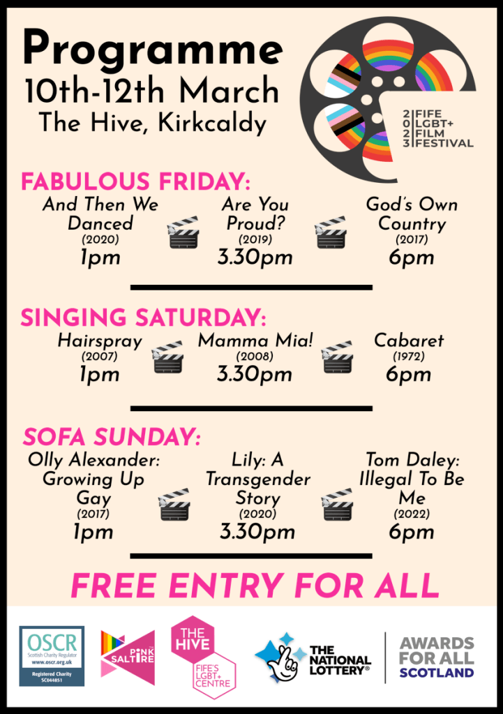 The inaugural Fife LGBT+ Film Festival will feature musicals, classics, romance and documentaries when it airs at The Hive, with screenings completely free to attend and is organised by Pink Saltire.